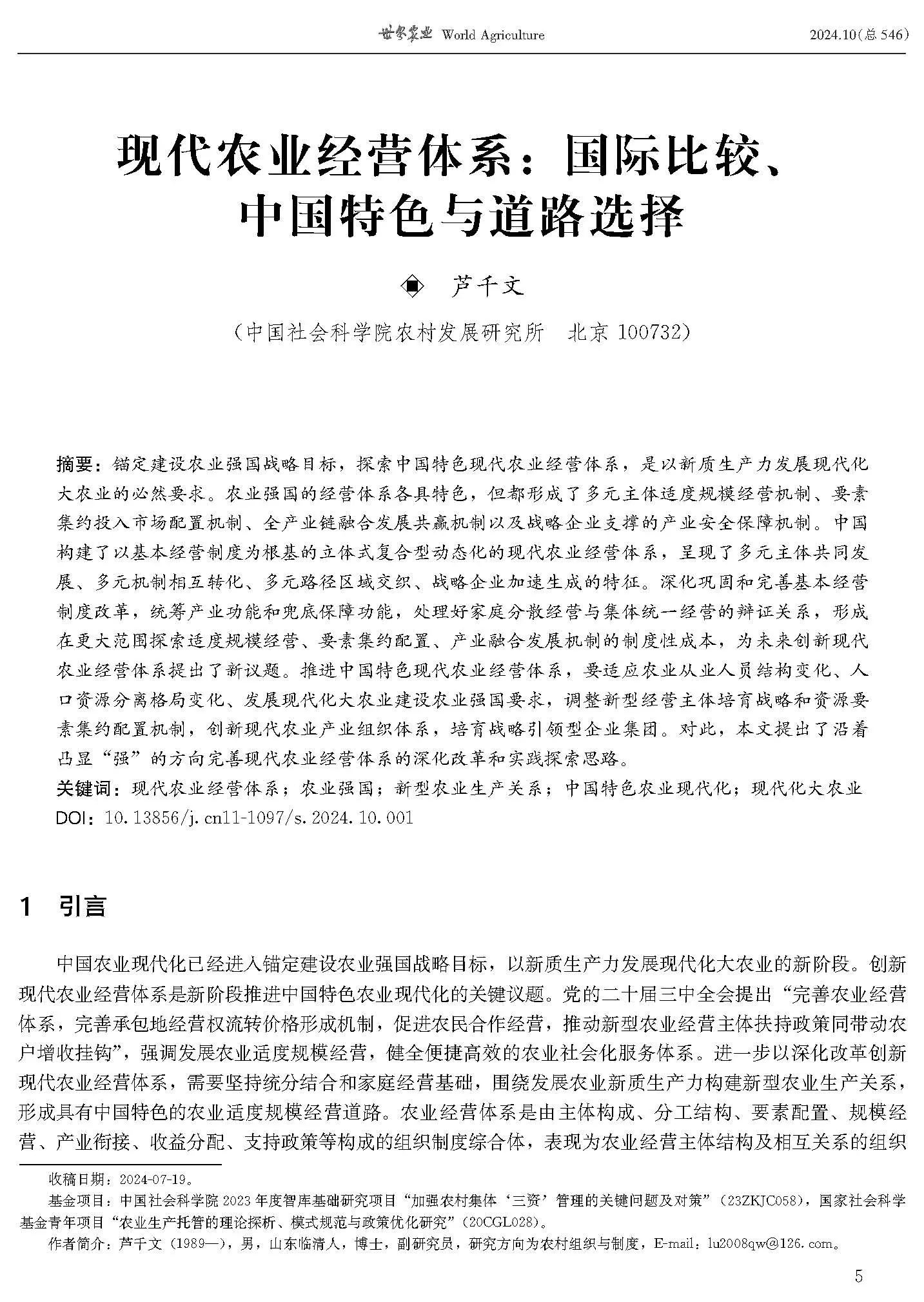《世界农业》及时追踪国内外农业经济研究领域的热点和焦点问题,全面介绍国内外农业经济发展经验及科研成果等。