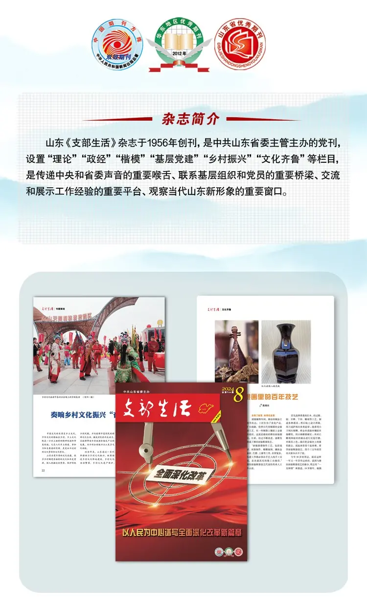 《支部生活》是中共山东省委主办的机关刊物,是省委宣传党和政府方针政策、加强党的建设和党员党性教育、指导经济社会发展、加强思想价值引领的重要舆论阵地。